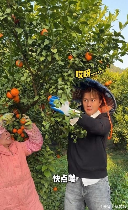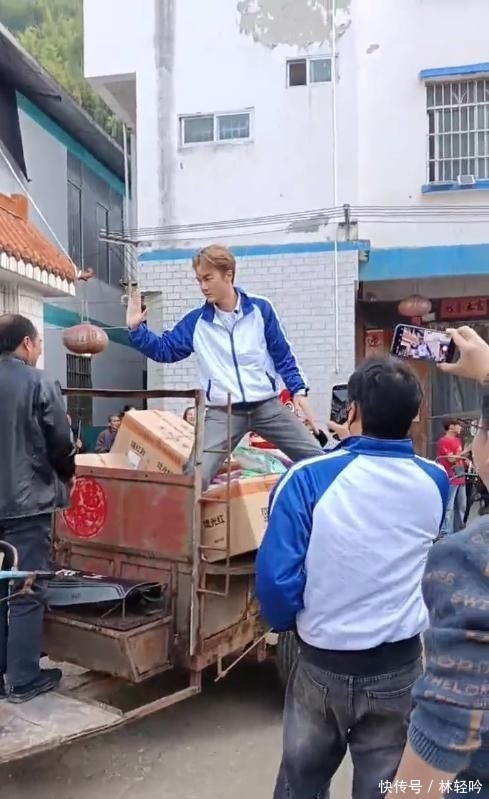 吴克群线下被偶遇,坐三轮车逛大集,帮农民干活好接地气