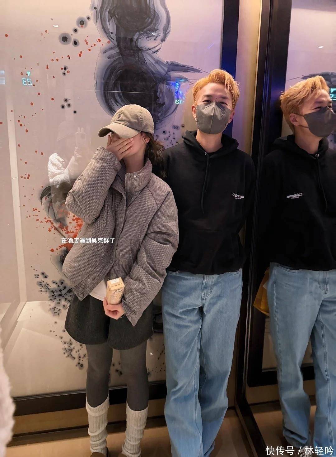 吴克群没有佩戴墨镜遮掩身份,也没穿名牌服饰,只套了一件朴素校服,脚踩一双普通塑料拖鞋,神情轻松自然,仿佛本就是这里的一员。
